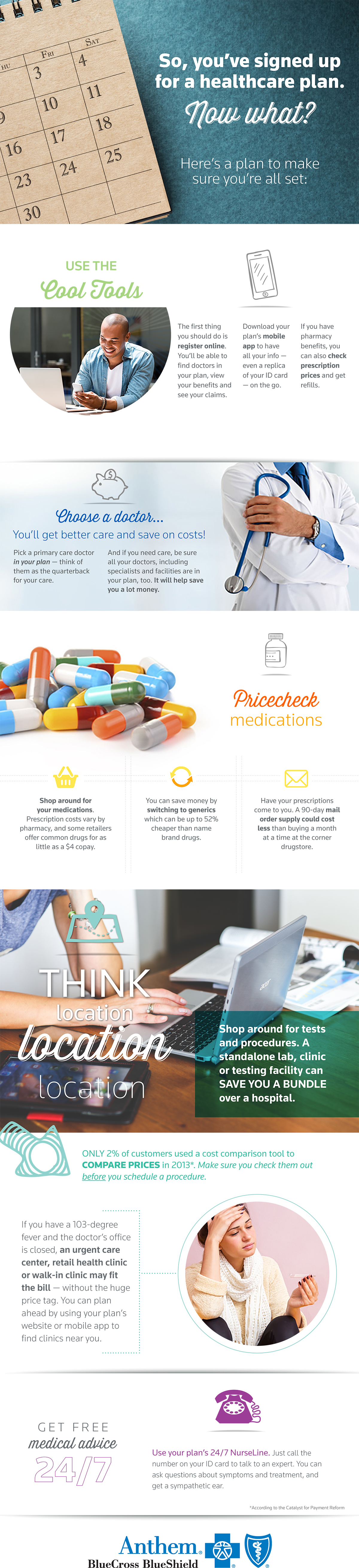- And if you need care, be sure all your doctors, including specialists and facilities are in your plan too. It will help you save a lot money.